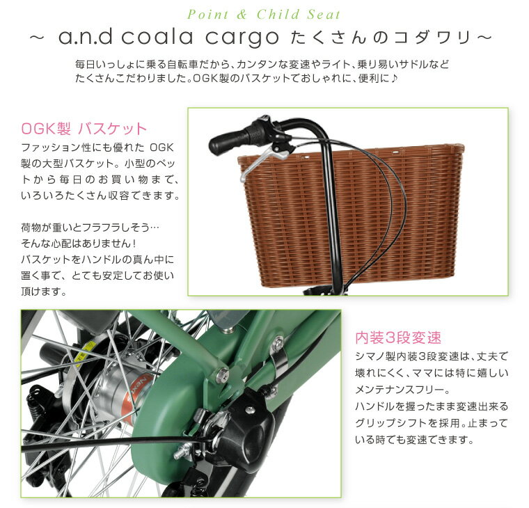 a.n.design works a.n.d coala cargo アンド コアラ カーゴ 自転車 20インチ 変速 オートライト シティサイクル 大容量バスケット 内装3段変速 ギア付 OGK 新生活 お買物 おしゃれ 可愛い オススメ 通勤通学 完成品 組立済