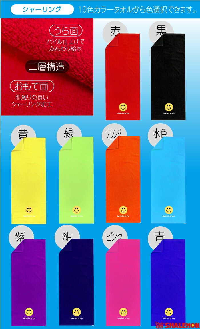 当店“シャレもん”オリジナルデザイン! お世話になっている人に、ちょっとしたワンポイントデザインのタオルはいかがですか? デザインの下のメッセージは5種類からお好きな言葉を選べます。