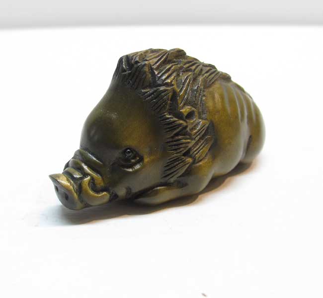 木彫り 根付 〜猪〜一刀彫 / 素材:柘植