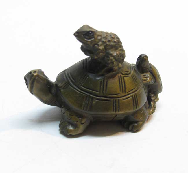 木彫り 根付 〜河童とかえる〜一刀彫 / 素材:柘植